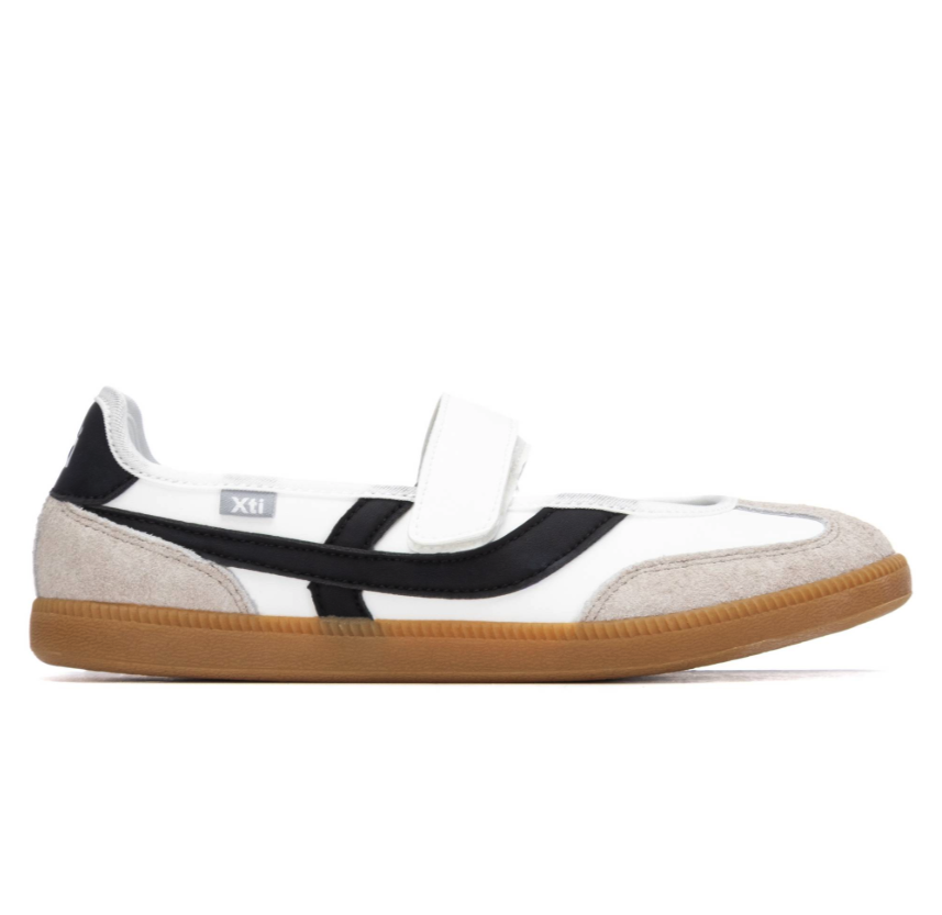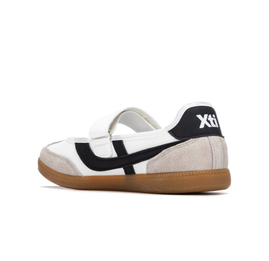 Bailarina de mujer, de la marca xti. Fabricada en material que imita la piel. estilo deportivo, ligera y cómoda para el uso diario. Incorpora una suela plana que garantiza confort y buena sujeción mediante tu tira de cinta adhesiva. Además, cuenta con suela antideslizante, para mayor seguridad y estabilidad.