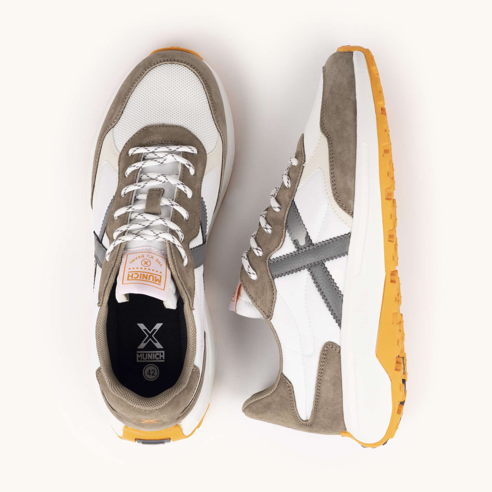 Diseñadas para la autenticidad y la expresión personal, BABEL refleja la energía vibrante de la cultura juvenil a través de un diseño atrevido con detalles audaces que te llevarán a las calles con total confianza. Esta zapatilla presenta una sofisticada combinación de texturas que mezcla piel blanca de alta calidad con paneles de ante en tonos tierra y una icónica logomarca en color gris marengo, todo ello elevado sobre una suela dentada en color amarillo mostaza que rompe las barreras convencionales. Es el calzado perfecto para destacar en ambientes urbanos y eventos creativos, ofreciendo una pisada cómoda y una estética rompedora que invita a la creatividad sin límites en cada paso.